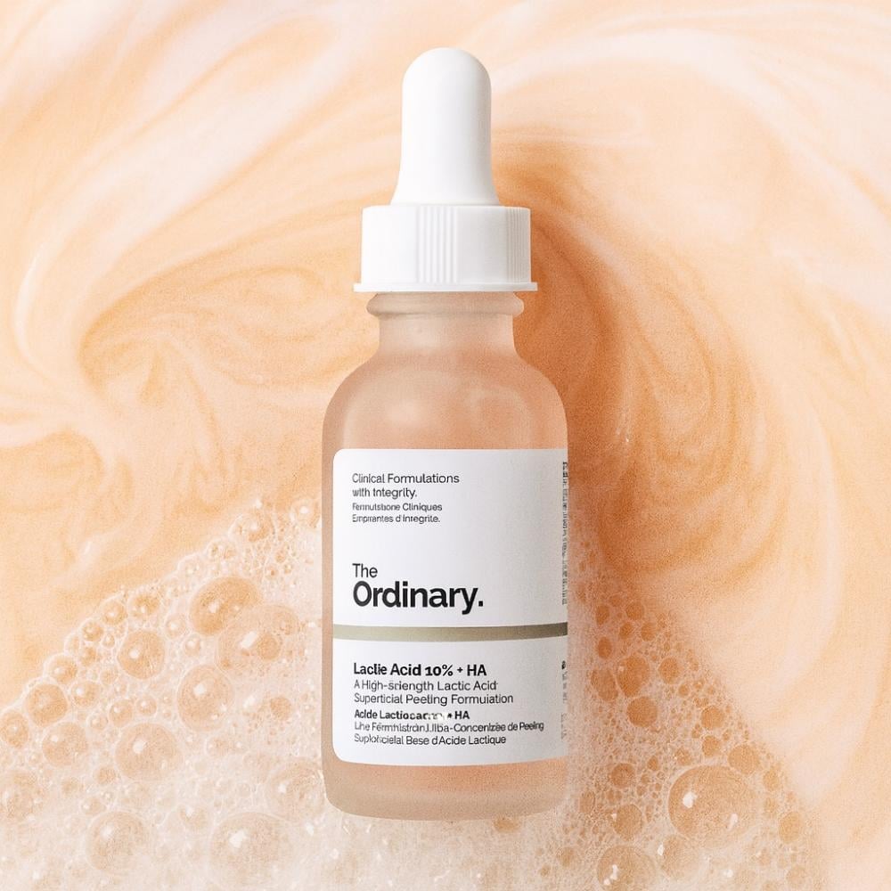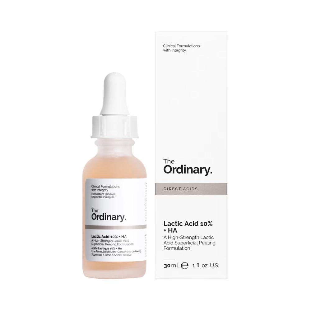 ذا اوردينيري حمض اللاكتيك 10٪ + حمض الهيالورونيك، تركيبة مميزة تقشر الطبقة السطحية من الجلد بلطف، وتكشف لك عن بشرة ناعمة، نضرة، ومتوهجة بدون تهيّج أو جفاف.