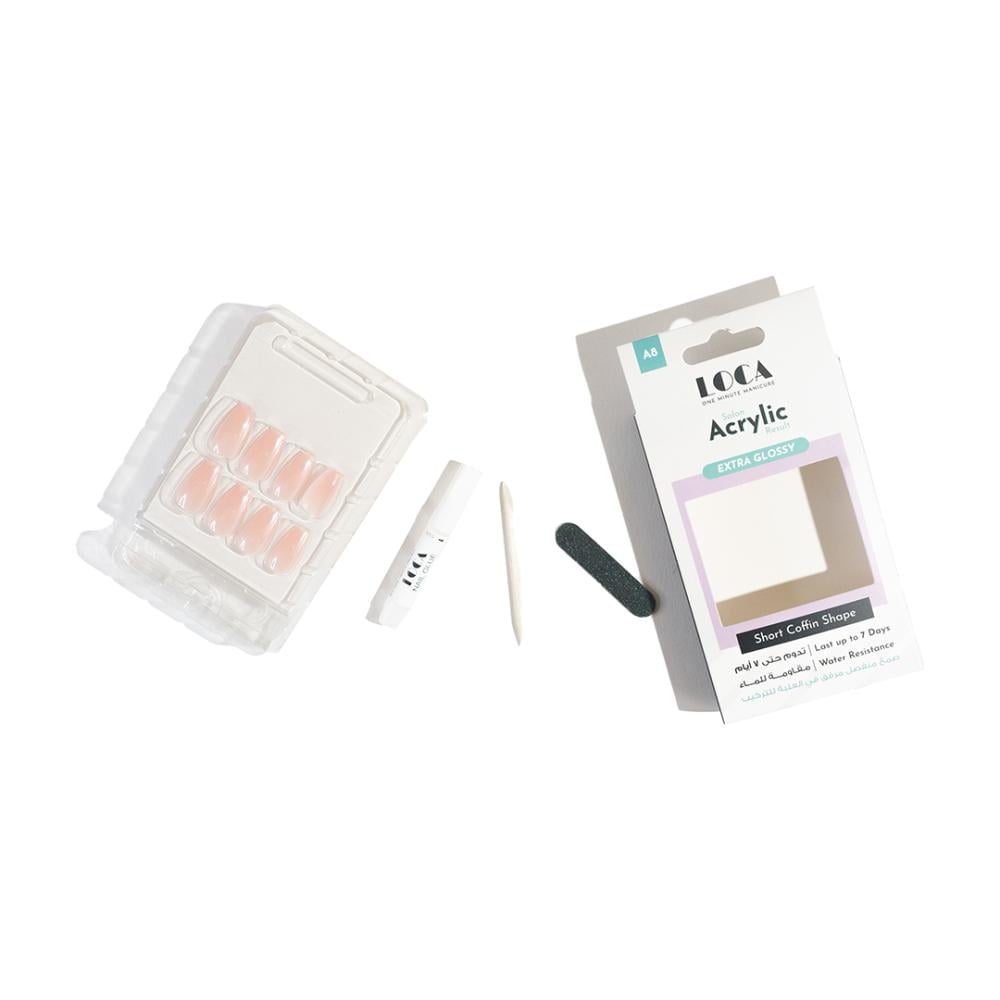 أظافر أكريلك ذو شكل كوفن قصير بجودة عالية و مرنة للغاية ، تناسب شكل الاظفر الطبيعي لتعطيك نتيجة الاكريلك بالصالون