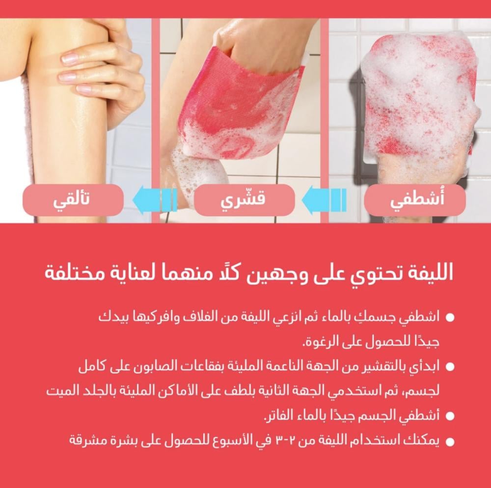 دللي بشرتك مع ليفة التقشير القوية بمستخلص أعشاب البحر وبوستبيوتيكس! استمتعي ببشرة ناعمة، متجددة، وتجربة استرخاء فريدة في كل استخدام. اجعلي العناية بجسمك عادة يومية تمنحك شعورًا بالراحة والجمال الطبيعي.