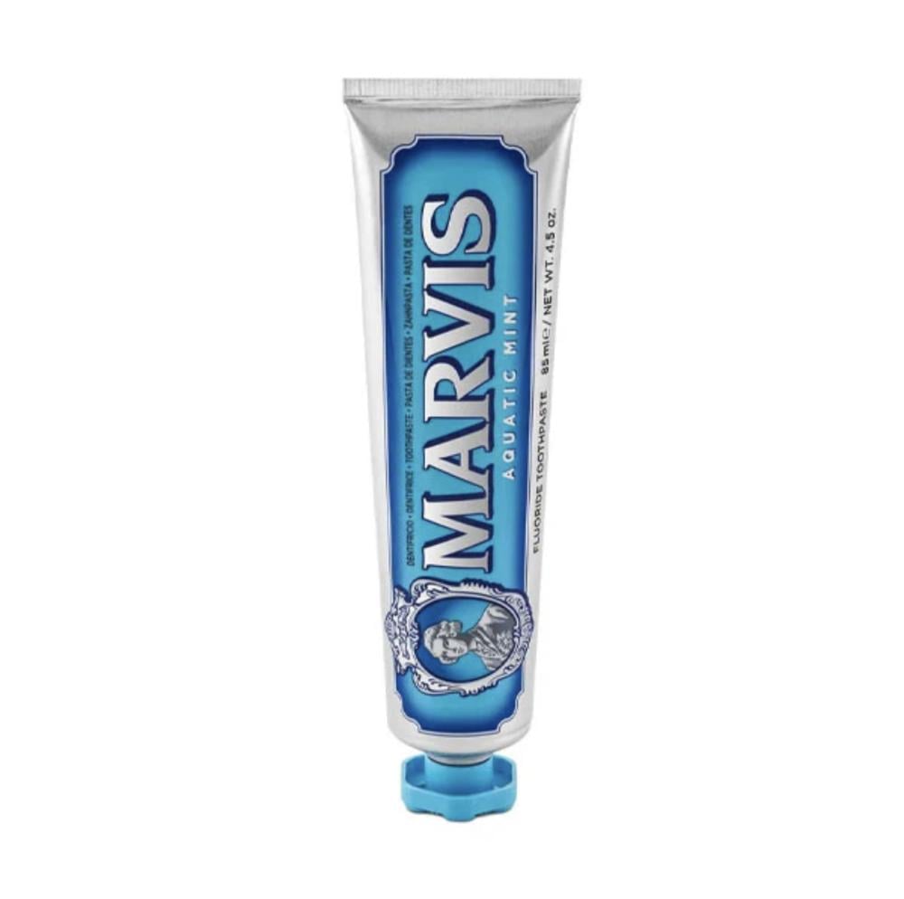 معجون أسنان مارفيك أكواتيك منت بنكهة النعناع المائي – تبييض الأسنان، حماية من التسوس، عناية باللثة وانتعاش يدوم طويلاً. مناسب للاستخدام اليومي ولجميع أفراد الأسرة.