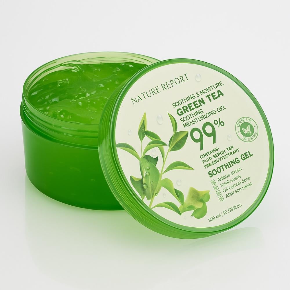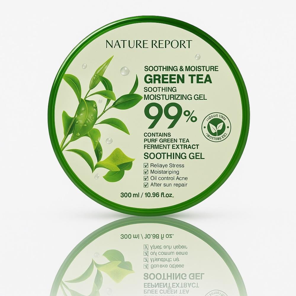 Use Nature Report Green Tea Aloe Vera Gel as part of your daily skincare routine for radiant and fresh skin.