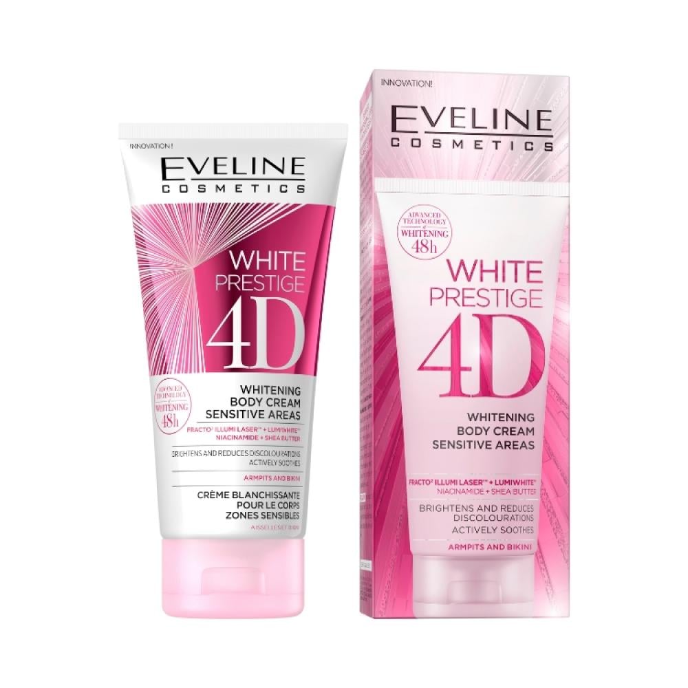 Eveline White Prestige 4D Whitening Body Cream for Sensitive Areas is specially formulated to brighten and even out the tone of intimate areas. This advanced cream helps reduce dark spots, improve skin texture, and deliver visible lightening and hydration while renewing skin cells.
